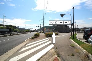 ルンビニーホームは国道2号線神戸神社前交差点角です。